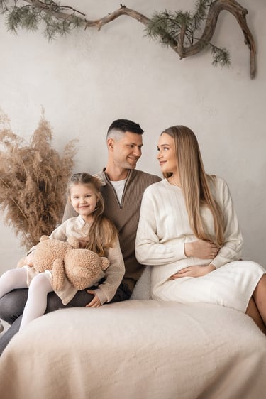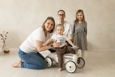 I photograph families, maternity moments, and children — whether in the studio, out in nature, or in the cozy warmth of your own home. I also document the precious moments of christenings with sensitivity and care, preserving memories you’ll treasure for years to come.